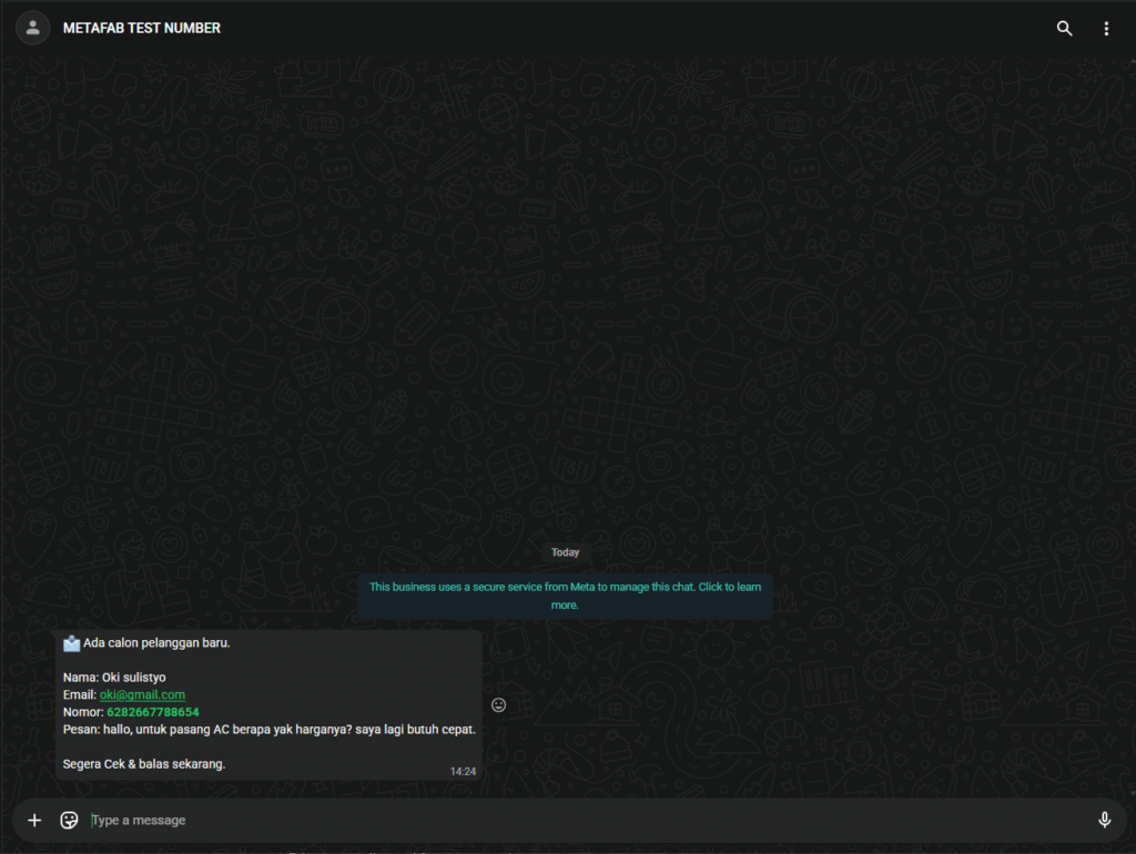 Kami membangun sistem notifikasi lead berbasis workflow otomatis yang terintegrasi dengan Google Sheet dan WhatsApp. Setiap kali calon pelanggan mengisi form di website, data langsung dicatat ke Google Sheet sebagai dashboard terpusat. Pada saat yang sama, sistem mengirimkan notifikasi WhatsApp ke owner atau admin berisi detail lead yang masuk. Dengan pendekatan ini, setiap peluang bisnis dapat langsung diketahui dan ditindaklanjuti dengan cepat, tanpa mengubah kebiasaan kerja atau menambah aplikasi baru.